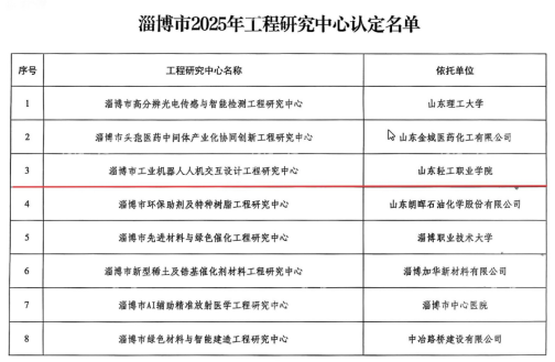 学校工业机器人人机交互设计工程研究中心获批2025年淄博市工程研究中心