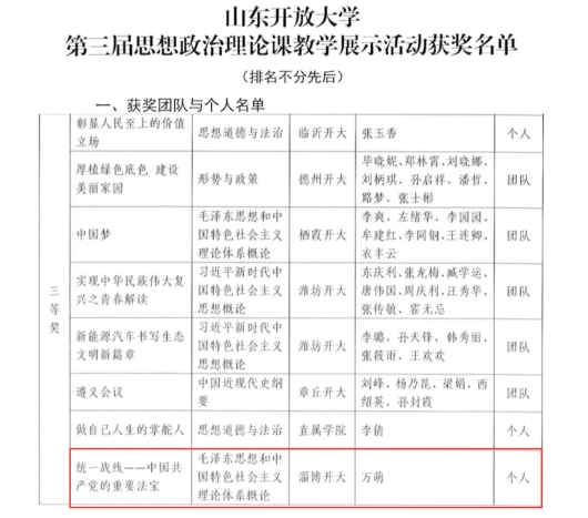 学校在山东开放大学第三届思想政治理论课教学展示活动中荣获多个奖项