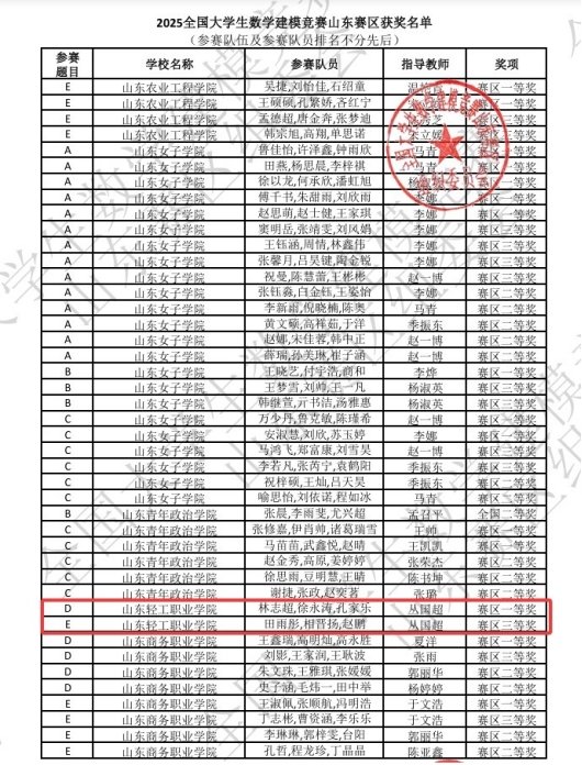 学校在全国大学生数学建模竞赛中荣获山东赛区一等奖