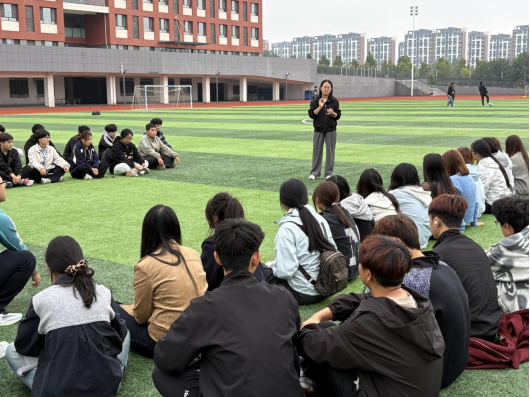 操场上,陈老师以刘长春孤身远征1932年洛杉矶奥运会、许海峰实现奥运金牌“零的突破”、北京成功举办2008年夏季奥运会等历史瞬间为脉络,深情回顾了中国体育从积贫积弱到屹立世界舞台的壮阔征程。一个个鲜活的故事,让在场学生深刻体会到:体育不仅是身体的锻炼,更是民族精神的锤炼,是国家强盛的象征。