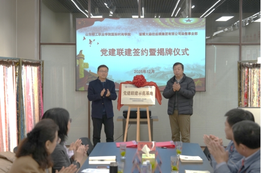 本站讯(通讯员 贾长兰)为深化党建引领作用,推动校企理论联学、科研联攻、队伍联动、基地联建,实现资源共享、人才共育、发展共赢。12月26日上午,山东轻工职业学院国际时尚学院教师二党支部与淄博大染坊丝绸集团有限公司染整事业部党支部开展党建联建活动。