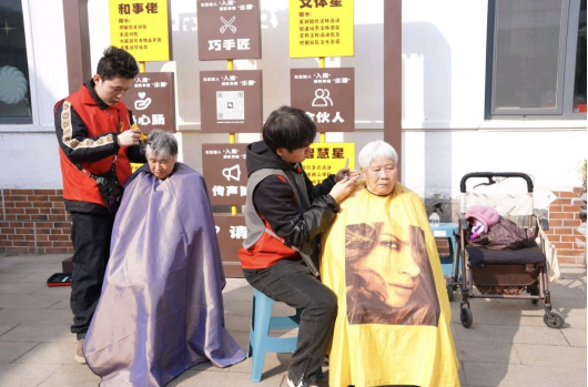 学院志愿者现场开展理发、缝补、手工制作等便民服务,以专业技能和贴心服务赢得社区居民一致好评。